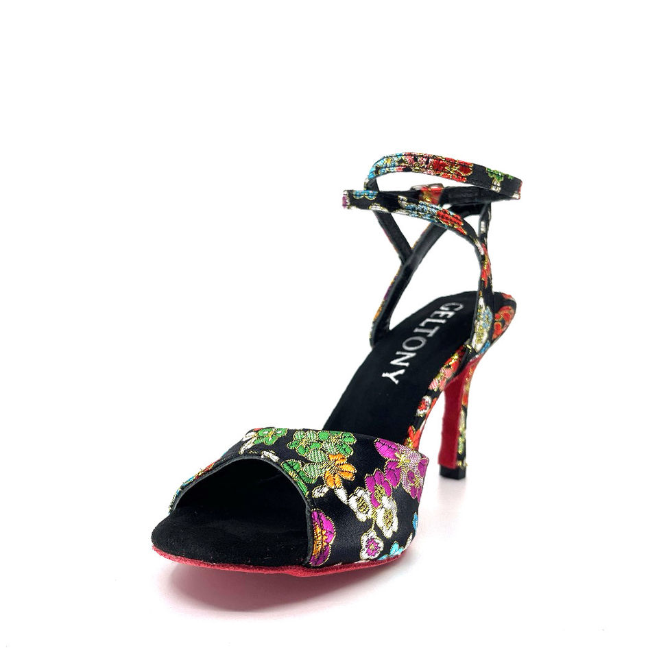 đ đđđđđđđ | Handgefertigte schwarze Tango- und BĂźhnenschuhe mit Blumenmuster und roter Wildledersohle